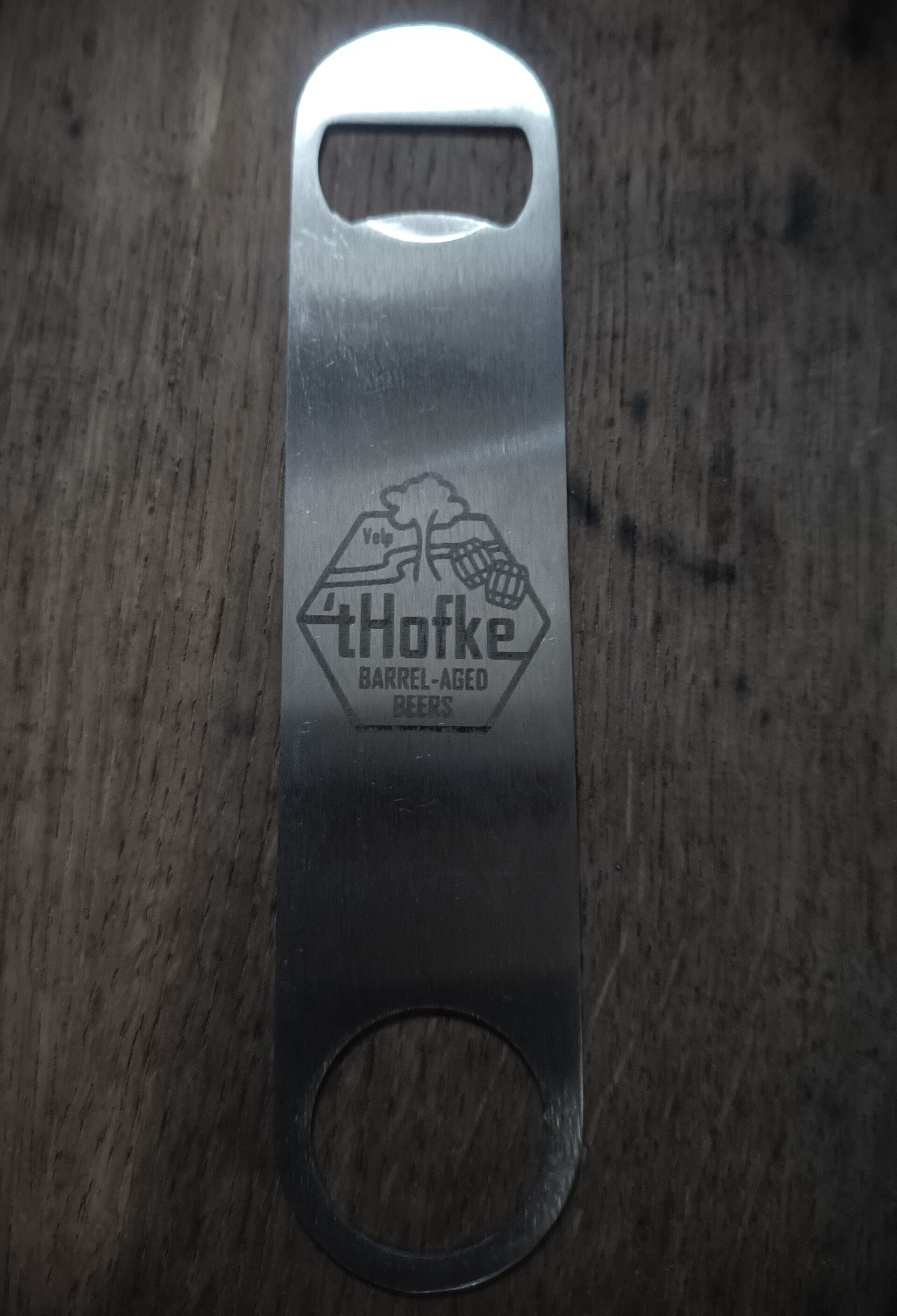 Luxe 't Hofke flesopener (RVS) met 't Hofke-barrel-aged beer gravure